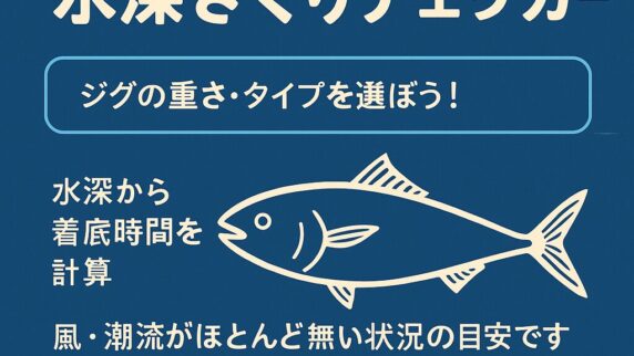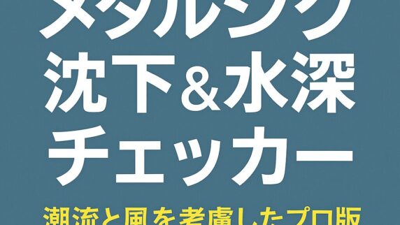 メタルジグの重さ・水深・潮流・風速から、着底時間と沈下イメージをざっくり計算できる無料ツール。ショアジギング向けに現実寄りの目安を表示します。